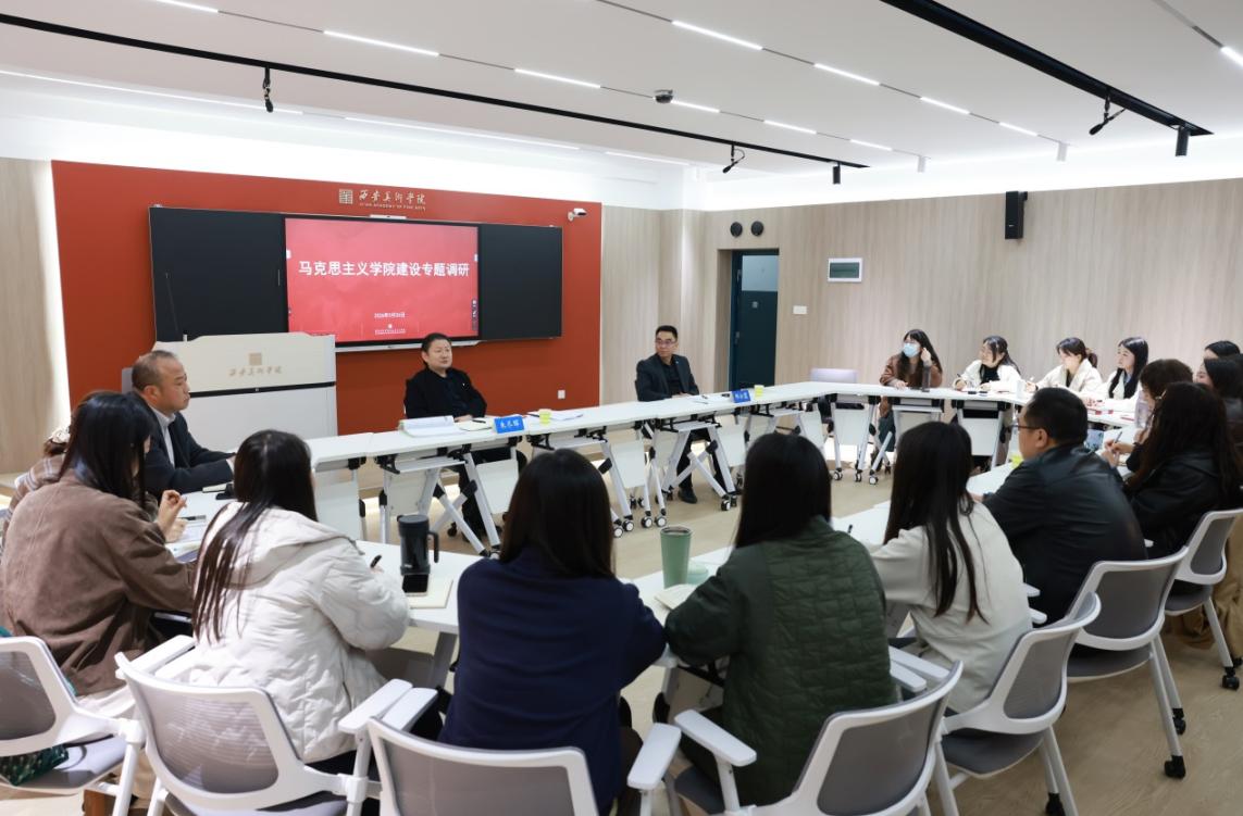 为进一步推进陕西省重点马克思主义学院和陕西省特色思政中心建设,精准破解马克思主义学院发展瓶颈,近日,院长朱尽晖深入马克思主义学院开展专题调研,党委副书记邱必震陪同调研。