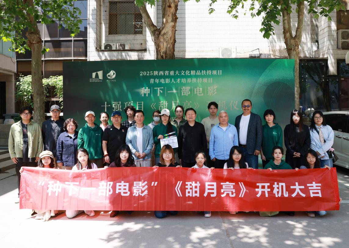 陕西省电影家协会等行业嘉宾、“种下一部电影”项目主创成员、《甜月亮》剧组成员,西安美院影视动画系相关负责人及师生代表参加开机仪式。