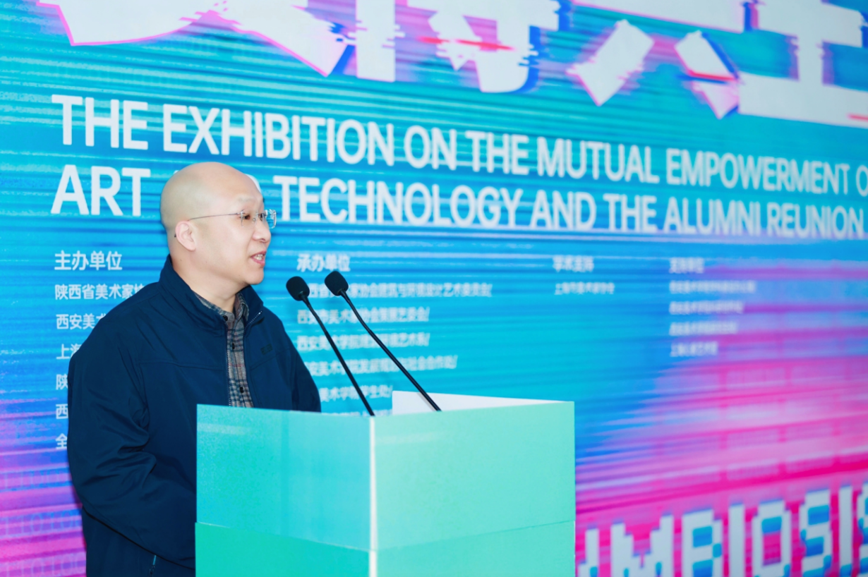 本次“赛博共生:艺术与科技的双向赋权”展览由陕西省美术家协会、西安美术学院、上海大学上海美术学院、陕西省农民画协会、西安市美术家协会、全球高校校友科创大赛组委会共同主办。展览通过前沿作品、主题演讲与跨界对话,构建了一个激发灵感、促进合作的深度交互场域。展览通过“智构·场域”“思辨·赋形”“共创·共振”三个板块,系统呈现艺术与科技如何相互激发、彼此成就,让来自不同背景的创作者、学者和观众,共同参与到这场关于未来的对话中。