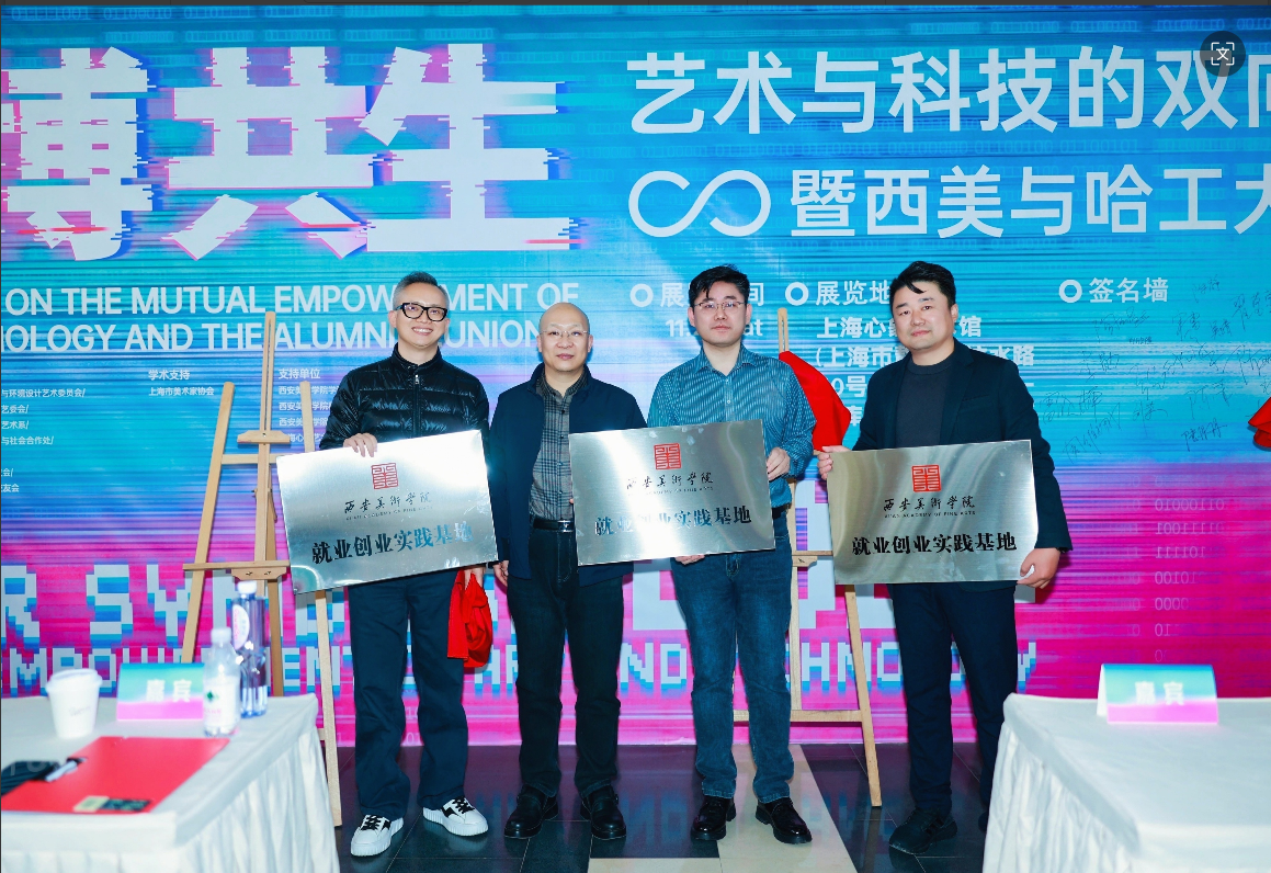 开幕式上,雷晓辉与优秀校友企业代表杨烨炘艺术中心、上海木景禾建筑景观设计有限公司以及器山书局,共同为“就业创业实践基地”揭牌。该基地将搭建起连接高校创意与产业应用的桥梁,旨在深化产学研融合,为学生的成长与发展拓展更广阔的平台。