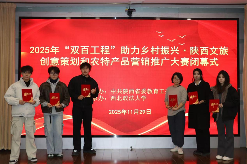 近日,由中共陕西省委教育工委主办、西北政法大学承办的2025年“双百工程”助力乡村振兴·陕西文旅创意策划和农特产品营销推广大赛省级决赛落幕。西安美院“陕”么都有助农团队凭借创新实践与扎实实力,在农特产品营销推广赛道脱颖而出,斩获省级一等奖。