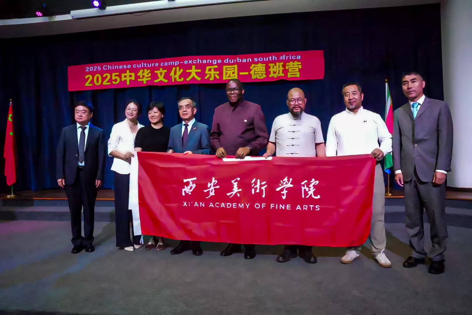 12月16日,由陕西省海联会、南非洲华文教育促进会联合指导,西安美术学院、陕西师范大学、西安外国语大学主办的“2025中华文化大乐园—南非德班营”于南非当地时间12月13日在南非德班市开营,我校中国画学院王珊、焦永峰,书法系王卫民、高全欣四位教师组成专业教学团队,将在为期10天的活动中,为当地华裔青少年及中小学生系统传授中国画与书法技艺,这是我校落实文化“走出去”战略、服务国家对外文化交流的又一重要实践。