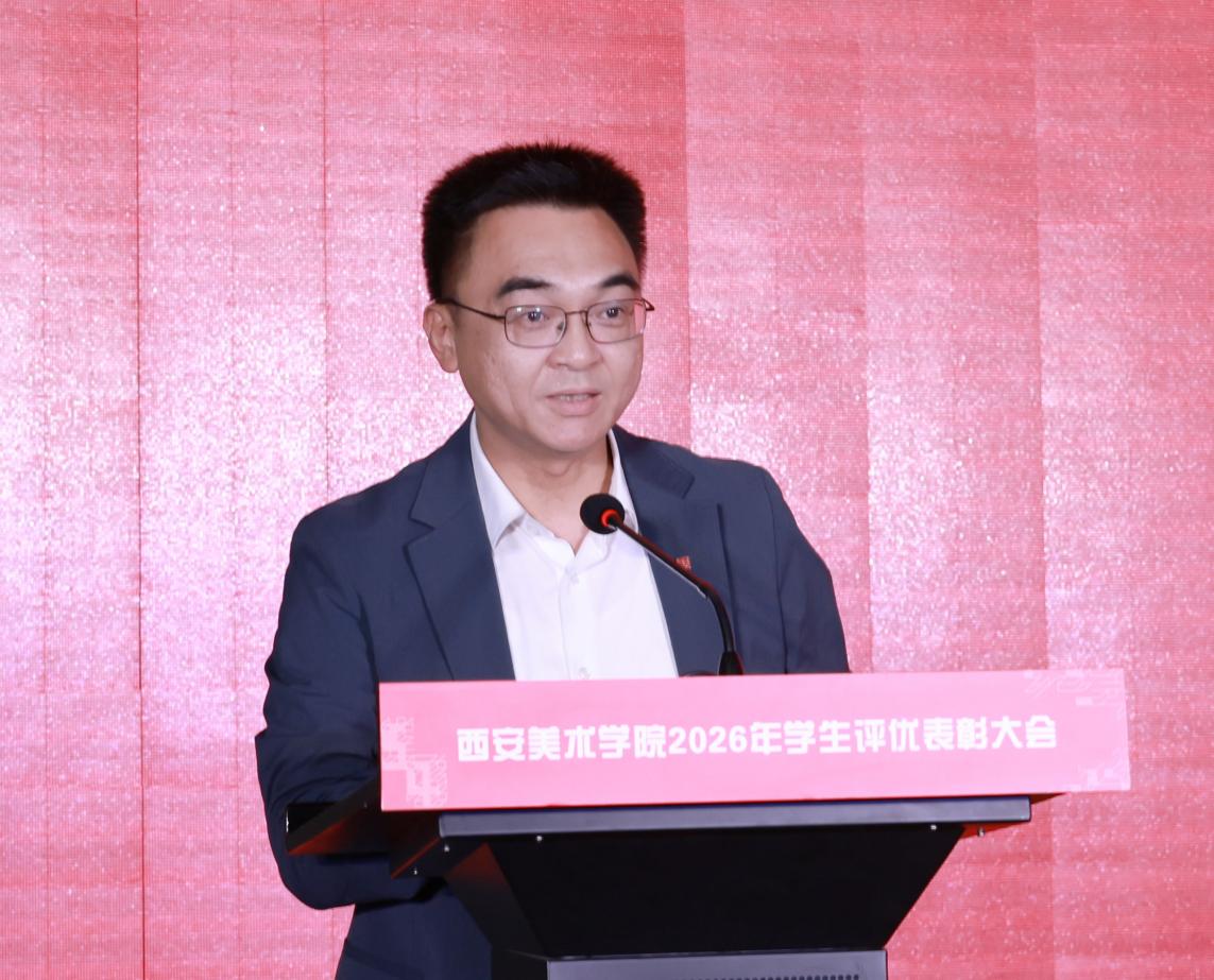 4月28日,西安美院2026年学生评优表彰大会在雁塔校区美术馆A馆举行。学校党委副书记邱必震,副院长武小川出席大会。