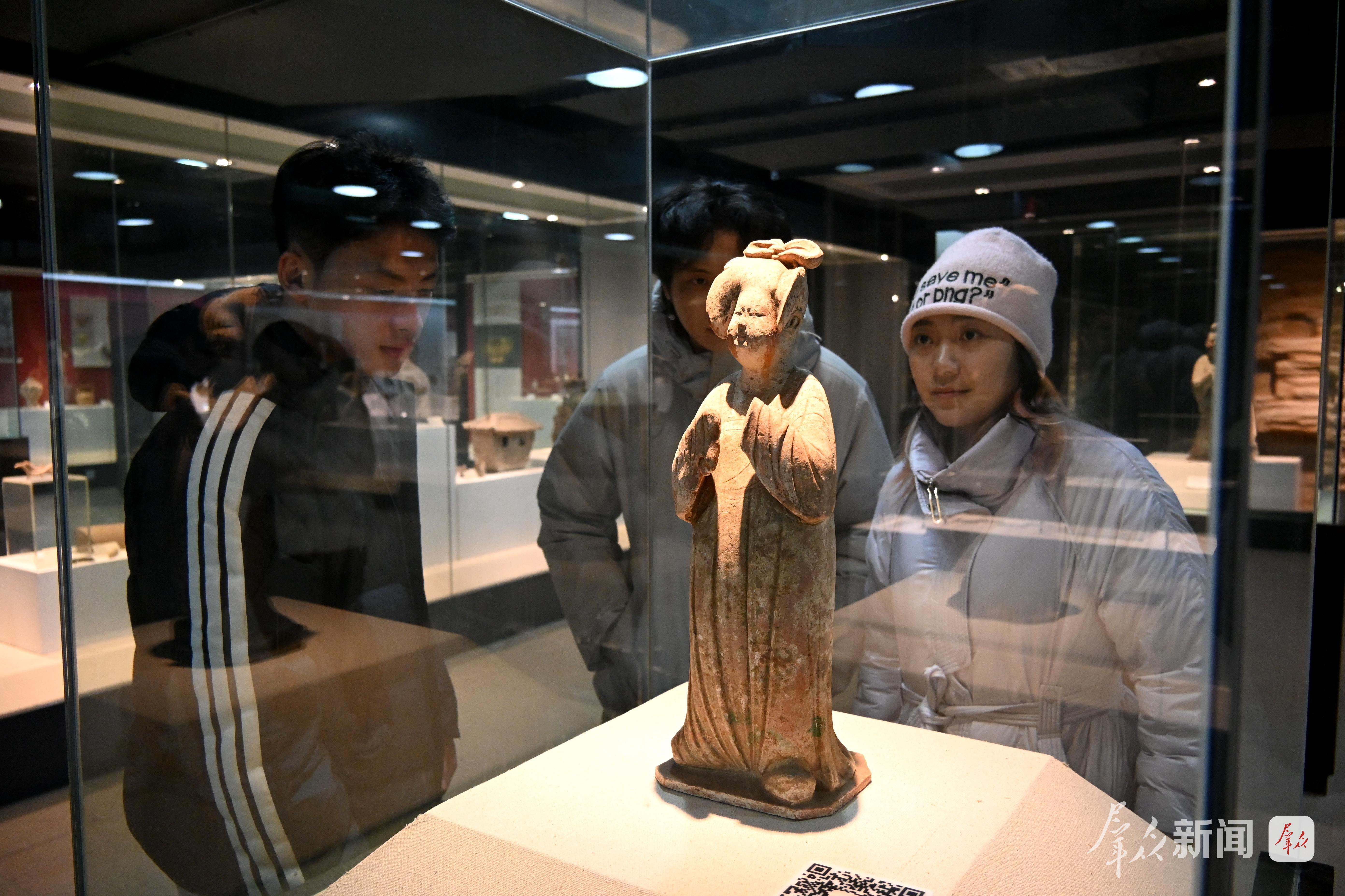 西安美术学院美术博物馆内,参观者在了解唐代文物